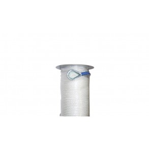 Corde à ancre en nylon blanc, avec boucle renforcée d’un côté.