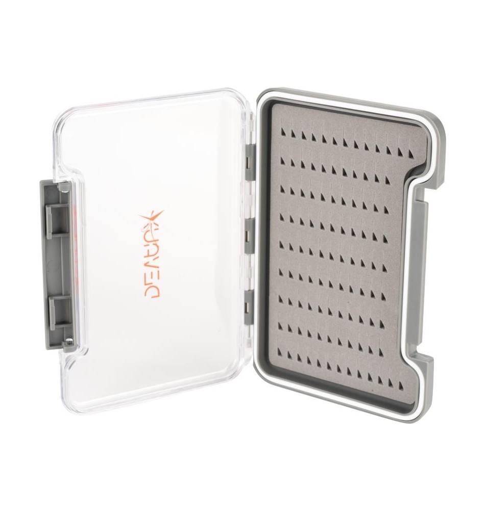 Cette série de boites est fabriquée en PVC haute résistance. Extra plates, elles rentreront très facilement dans les poches de votre gilet. Système de fermeture par pression avec joint d’étanchéité. Les boites OUIBOX FLAT se déclinent en 2 tailles et 4 faces différentes. Les faces A et B sont en mousse haute densité. La face B des boites FLATSIL est en silicone, matière qui n’absorbe pas l’humidité. La face C est idéale pour les mouches sèches avec des hackles.