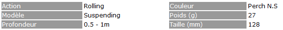 Son rolling extrême conjugué à une forte nage sinusoïdale est un atout majeurs qui fait du GAMERA 128 SP un excellent leurre à brochet (entre autre !). De cette combinaison résulte une sensation de nage très fluide et naturelle particulièrement attractive pour un carnassier dans les phases de 'cranking'(récupération linéaire). Grace au transfert de masse interne il se lance très facilement vous offrant des prospections larges, très utiles à chaque fois qu'il faut balayer du terrain (en mer comme en eau douce !). Très performant sur les pêches en continue, effectuez de temps en temps dans votre récupération de longues pauses qui laisseront tout le temps au carnassier de le happer !