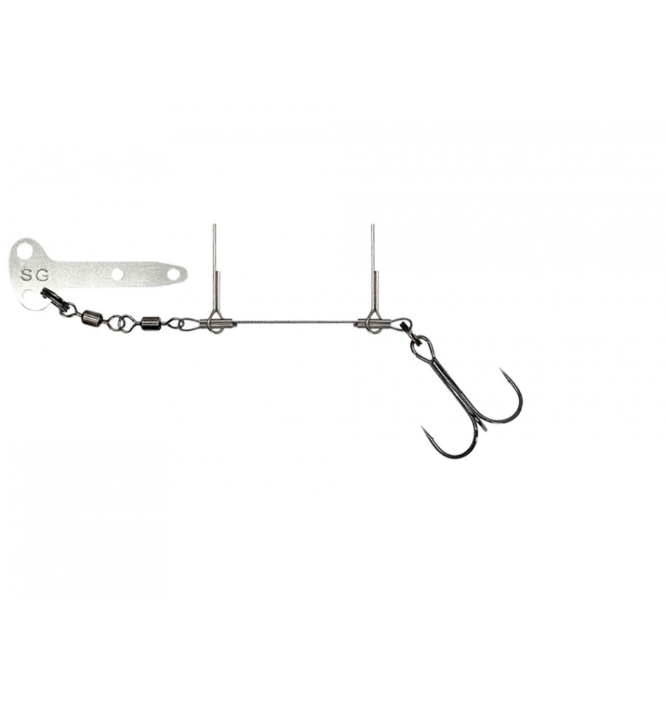 Ce montage est idéal pour les leurres souples de taille moyenne. La lame en acier inoxydable se fixe solidement au leurre, assurant un équilibre optimal et une présentation réaliste. La possibilité d'ajouter des stingers et des poids supplémentaires permet d'adapter le montage en fonction des conditions de pêche et des espèces ciblées.