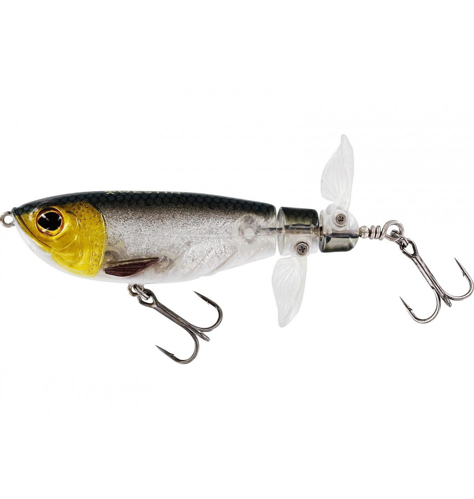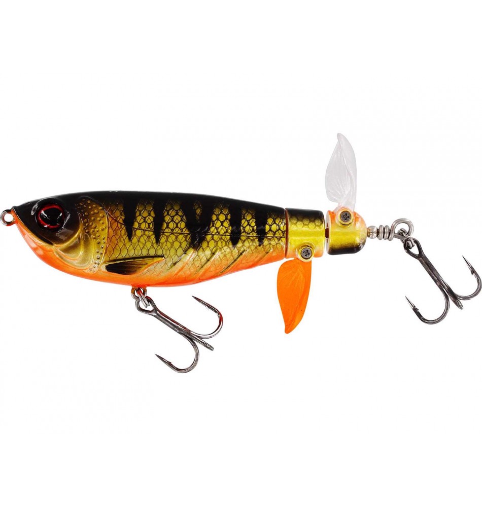 Le Spot-On Twin Turbo a vraiment dépassé nos attentes. Ce puissant leurre topwater possède un design unique breveté qui le rend irrésistible pour les carnassiers qui chassent en surface. Le profil large et le corps à motifs de poisson, associé à des yeux réalistes, en font une cible à laquelle il est difficile de résister pour les perches, les black bass, les brochets, les bars et les snooks. La large tête créée un sillage à la surface, tandis que les deux hélices se déplacent indépendamment l'une de l'autre, l'une dans le sens des aiguilles d'une montre, l'autre dans le sens inverse, pour générer un son unique qui attire les poissons de loin. Combiné avec les billes basse fréquence, le Spot-On Twin Turbo annonce sa présence comme aucun autre leurre. Super facile à pêcher, il pop quelle que soit la vitesse à laquelle vous le récupérez. Les deux hélices tournant dans des directions opposées, le leurre reste stable, même durant les récupérations rapides. Les hélices semi-souples et super résistantes se replient à plat contre le corps lors du lancer, créant ainsi moins de résistance à l’air et permettant des lancers plus longs et plus précis. De même, lorsqu'un poisson attaque, les hélices se replient, ce qui permet un meilleur ratio touche-prise. Si vous interrompez la récupération, le Spot-On Twin Turbo se positionne en queue en bas, les hameçons ultras piquants prêts à piquer tout carnassier qui attaquerait. Le design du Spot-On Twin Turbo est si unique qu'il est protégé par un brevet Design Patent.