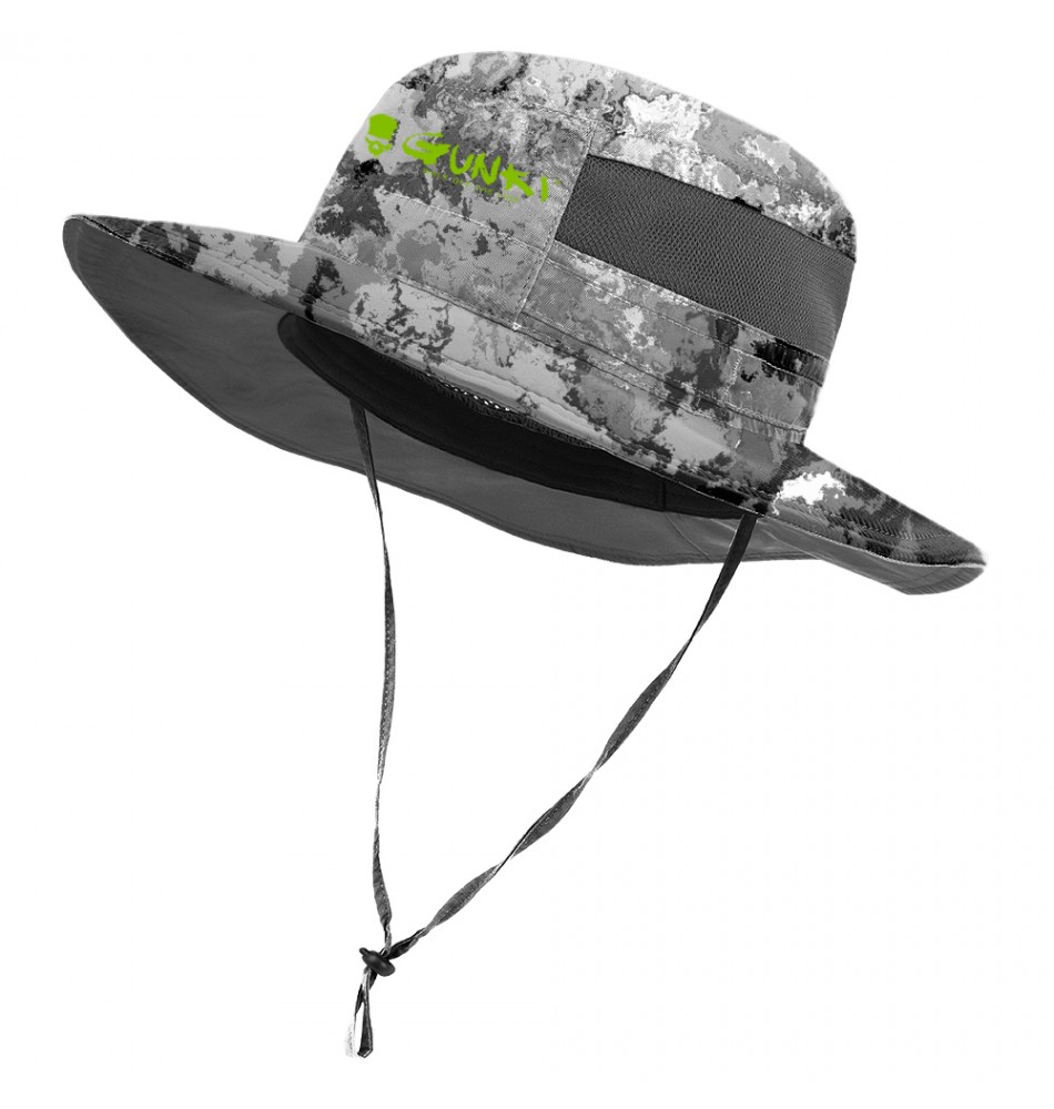 Chapeau à rebord large, très couvrant, pour bien protéger votre nuque et oreilles des coups de soleil. Des aréations sont prévues pour une bonne ventilation de votre tête! Protection UV UPF50. 100% Polyester. Cordon de serrage ajustable.