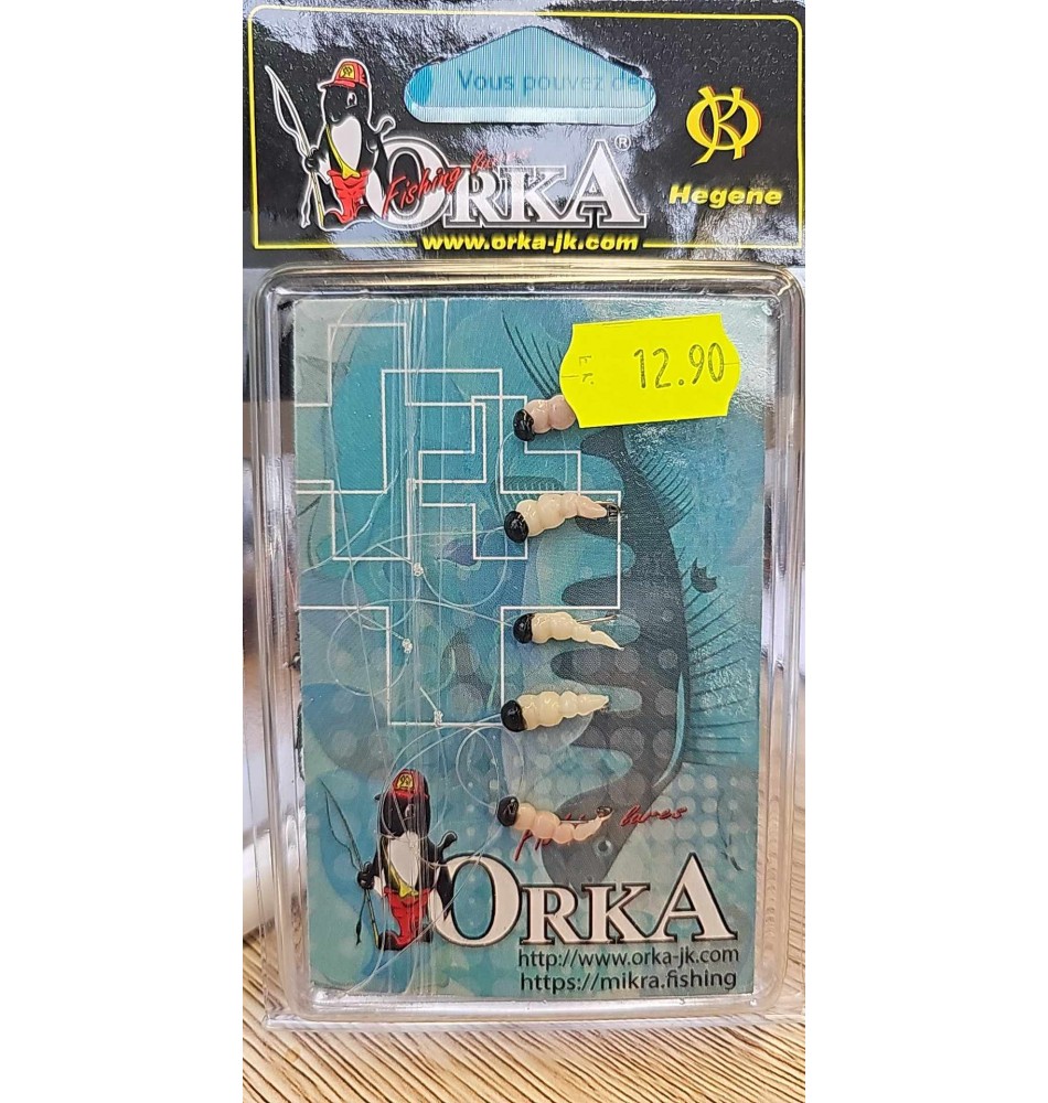 Les populaires Maggots Hegenen d'Orka sont disponibles en plusieurs modèles. Ces excellentes imitations d'asticots sont les appâts parfaits pour un pêcheur à la ligne. La haie comprend 5 appâts.