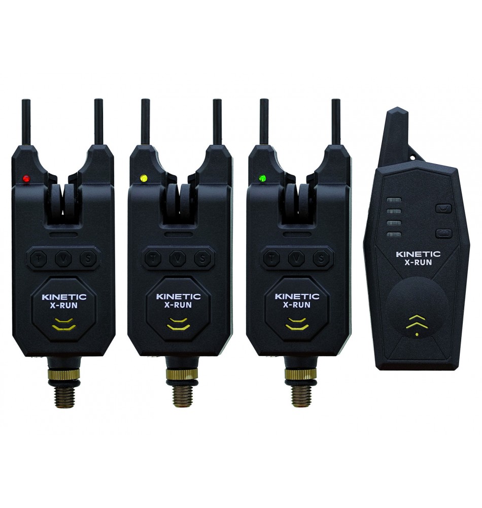 Introducing the ultimate combination of style, simplicity, and function - the Kinetic X-Run alarms have been met with rave reviews from anglers since their launch. These alarms are packed with the features you would expect from a modern bite alarm and more. In-built Tone, Sensitivity, and Volume micro-adjustment. Seamless receiver range of 100 metres. Screw-in snag ears for rod security in bad weather. The alarm heads and receiver are powered by widely available 9v batteries. The X-Run alarms are available in 3+1 (R/Y/G) and 2+1 (R/Y) sets.