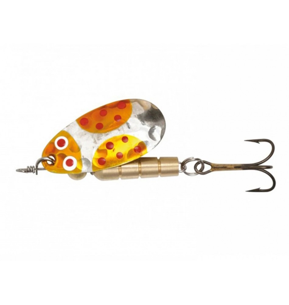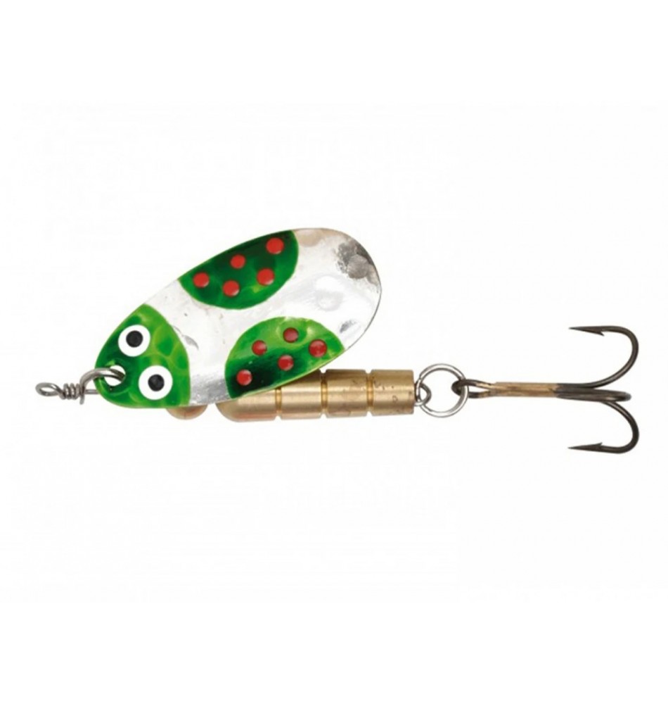 Les truites, les brochets et les perches ne peuvent tout simplement pas résister à ces cuillers exclusives. Une rotation parfaite, un jeu de couleurs efficace et une large palette de couleurs conduisent automatiquement au succès. Nous avons transféré la fabrication dans notre atelier de Thoune et réalisons chaque pièce à la main, y compris la peinture. Résistant aux chocs, plaqué argent et oxydé noir, monté avec triplet. Effets de charme irrésistibles dus au martelage.