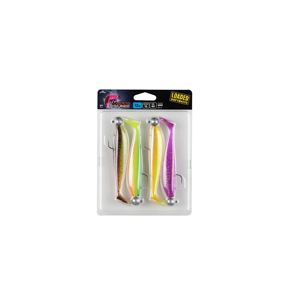 • Fox Rage Ultra UV Zander Pro Shad Loaded Lure Packs 3/0 10cm 10g 4pcs