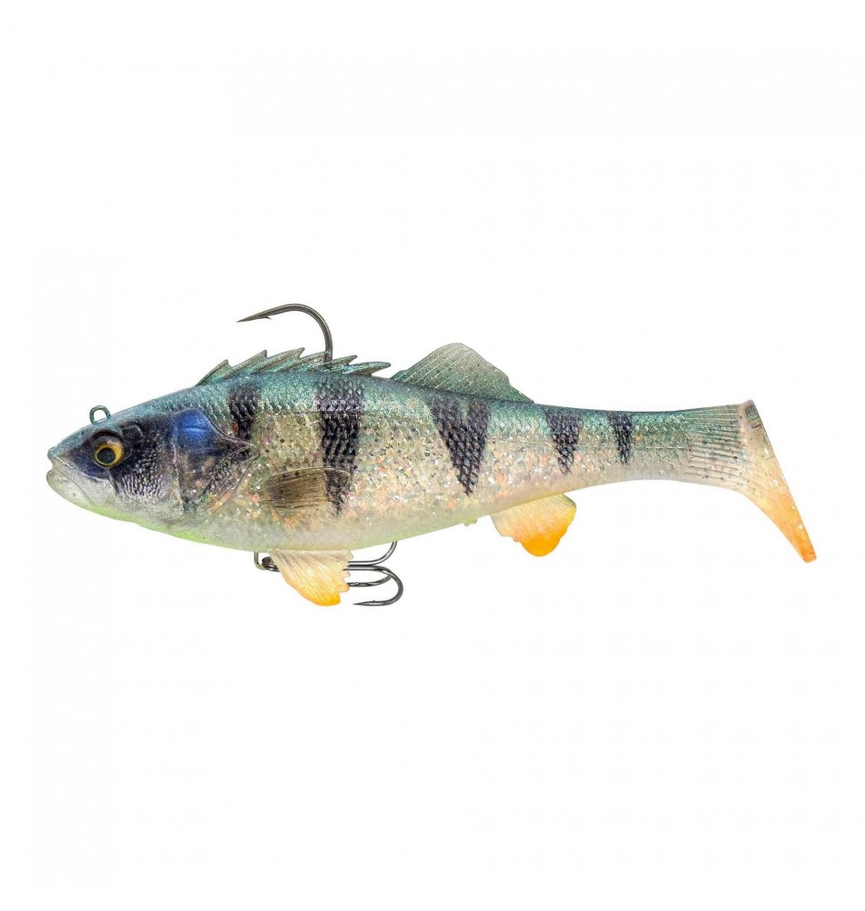 Barsche sind eine der wichtigsten Beutetiere für Hechte und kommen in fast allen Gewässern Europas vor. Deshalb wurde dieser RTF-Barsch (Ready to Fish) entwickelt. Er basiert auf dem Scan eines echten Barsches, mit extrem realistischen Details, Photo-Chrome-Skin Print und hinzugefügtem DNA-Geruch. Natürlicher geht's nicht mehr! Durch die Kombination aus schneller Sinkgeschwindigkeit, Weich-PVC und leichtem, aber großem Paddel mit Glasrassel schwimmt dieser Köder immer auf dem Fall, auch bei Spannung an der Schnur! Daher kann dieser Köder sowohl in flachen Gewässern mit leicht nach oben gerichteter Spitze gefischt werden, aber auch zum Schleifen in tiefen Gewässern auf echte Monsterhechte eingesetzt werden. Der große Paddelschwanz lässt den Köder verführerisch schaukeln und die Rassel im Schwanz sendet provozierende Klicks aus, um neugierige Raubfische anzulocken und den Köder in trüberem Wasser zu lokalisieren.