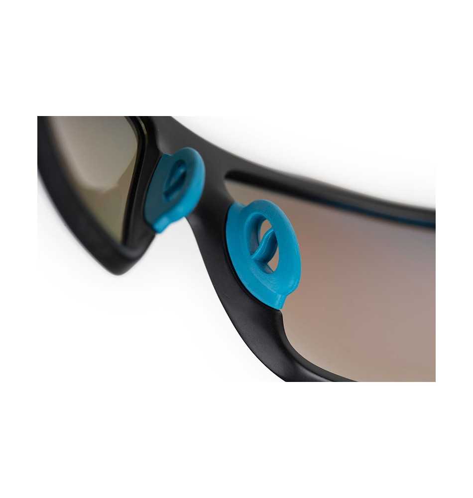 • Verres TAC polarisés résistants aux impacts avec une réflexion bleu.