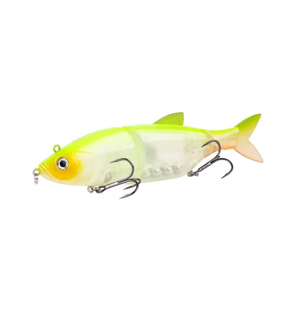 • Swimbait articulé à corps dur avec queue et nageoire dorsale souples