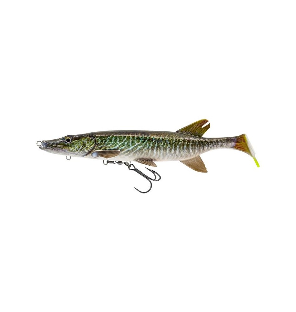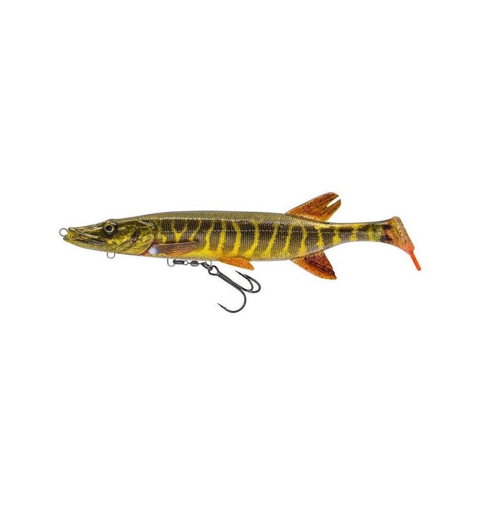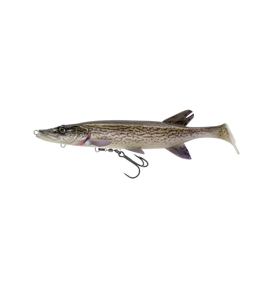 Basé sur un scan 3D d’un véritable petit brochet aux détails parfaits, impression Photo-Chrome et parfum ADN ajouté – Ce leurre ne manquera de vous surprendre sans parler des poissons que tu cherches à attraper. Les petits brochets sont la proie préférée des gros brochets à certaines périodes de l’année, et ces leurres très réalistes seront redoutables au bon moment. L’hameçon triple ventral est fixé sur un émerillon, ce qui rend très difficile pour le brochet de se décrocher lors du combat. La queue paddle confère une nage séduisante et le rattle dans la queue émet des clics provocateurs pour attirer les carnassiers curieux. L’anneau situé sous la tête permet d’ajuster la vitesse de descente du leurre en ajoutant un lest si les conditions nécessitent de pêcher plus en profondeur.