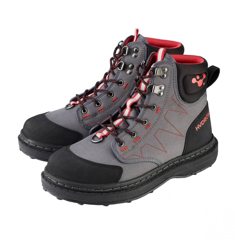 Chaussures de wading réalisées en toile imputrescible resistante et ultra-légère - Séchage rapide - Renforts caoutchouc avant/arrière - Coupe anatomique et mousse haute densité en contour de cheville pour un confort optimal - Semelle Rubber