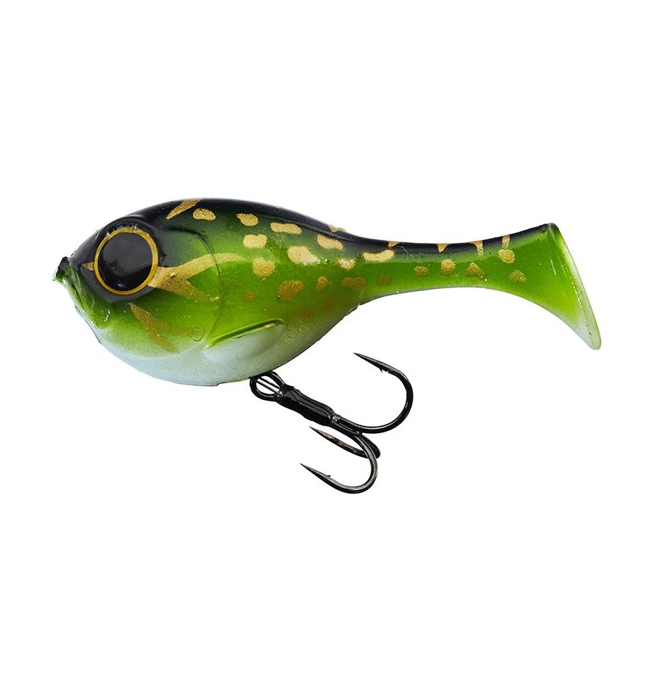 Le MAGNUM DERABALL a été développé exclusivement à notre demande. En effet, Gael Even et Thomas Vogels ont su convaincre la firme japonaise JACKALL du potentiel de cette nouvelle taille. La marque ILLEX est donc fière de vous annoncer le lancement de cette grande taille du DERABALL. +20% en taille et volume, le MAGNUM DERABALL conserve tous les attributs qui ont fait la renommée de ce leurre au concept unique. Un leurre souple hybride à mi-chemin entre un crank et un shad, il est à classer dans la catégorie des soft swimbaits. Il ressemble à beaucoup de proies (battraciens, poissonnets, rongeurs). Cette petite boule, compacte et très dense se lance facilement à longue distance et se skippe sous les frondaisons avec une facilité déconcertante. Animez-le par une simple récupération, sa nage serrée est un véritable stimulus qui déclenchera l’attaque des carnassiers postés dans des eaux peu profondes, sous le couvert végétal, près d’une cavité de berge, de bois morts immergés, de zones d’herbiers, de champs de nénuphars ou d’enrochements… Initialement pensé pour des pêches dans des eaux peu profondes, rien ne vous empêchera de pêcher plus creux en ajoutant une balle Tungstène qui devra être libre. Le système du montage téléphérique dit « Line thru » permet de passer votre bas de ligne à travers le leurre afin de le faire remonter sur la ligne lors du combat. L'armement ingénieux du MAGNUM DERABALL se présente sous la forme d'un hameçon triple renforcé de première qualité muni de deux antennes ligaturées pour le fixer et monté sur émerillon rolling afin de permettre une rotation à 360° et minimiser ainsi les risques de décroches. Cette version XL du DERABALL fait tout comme la taille originale... en plus gros ! Plus grosse silhouette, plus grosse vibrations, plus gros volume d'eau déplacé, tout cela pour susciter l'intérêt de plus gros carnassiers (brochet, black-bass, grosse perche, silure). Un leurre à la fois ludique et sans concession.