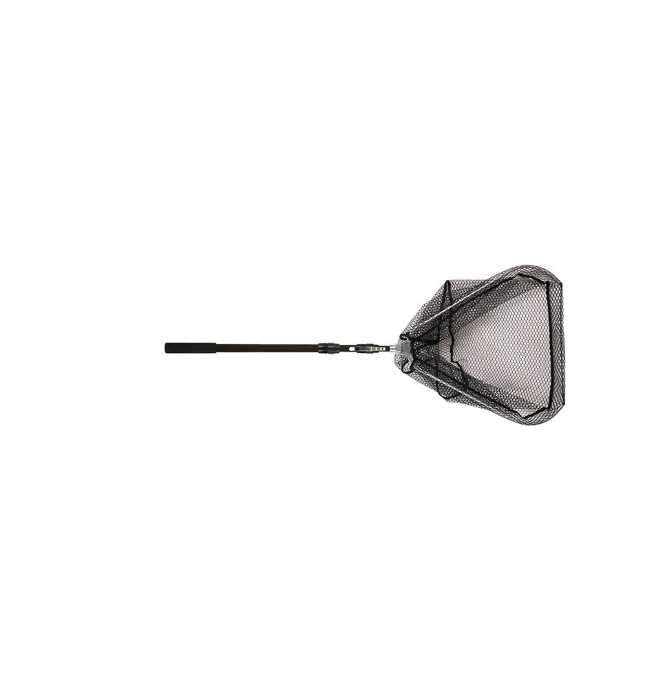 Feumer mit Gumminetz, 3-teilig teleskopisch ausfahrbare Länge und zusammenklappbarem Keschernetz. — Gumminetz Maschenweite: 15x8mm — Netzgrösse: 50x50x50cm — Teleskopisch ausfahrbar auf 180cm — Transportlänge: 65cm — Inkl. Gurt-Clip