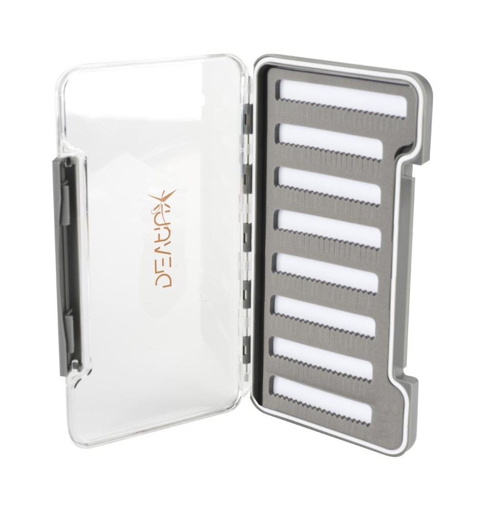Cette série de boites est fabriquée en PVC haute résistance. Extra plates, elles rentreront très facilement dans les poches de votre gilet. Système de fermeture par pression avec joint d’étanchéité. Les boites OUIBOX FLAT se déclinent en 2 tailles et 4 faces différentes. Les faces A et B sont en mousse haute densité. La face B des boites FLATSIL est en silicone, matière qui n’absorbe pas l’humidité. La face C est idéale pour les mouches sèches avec des hackles.