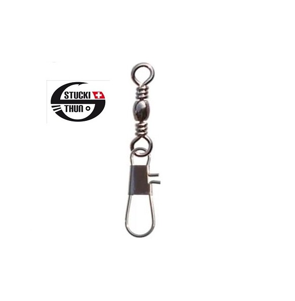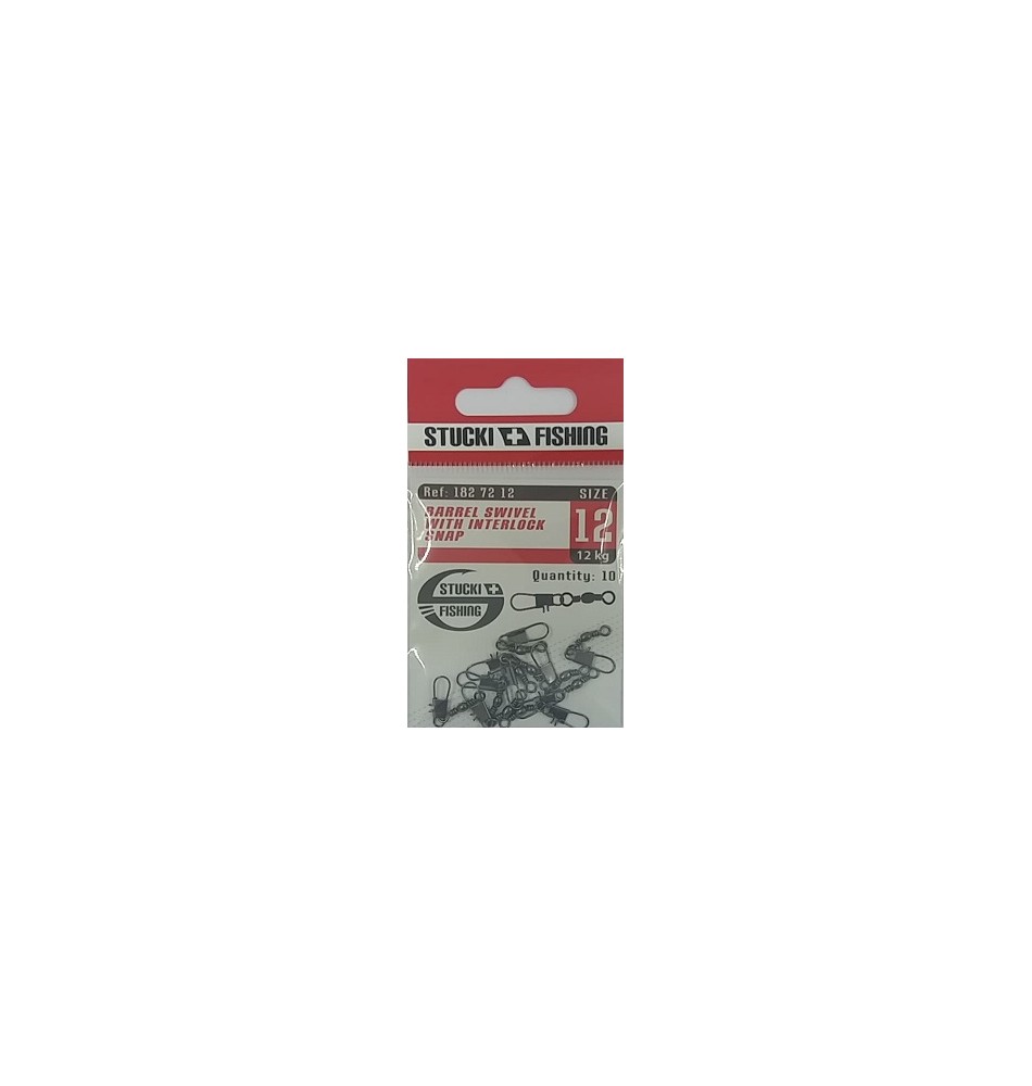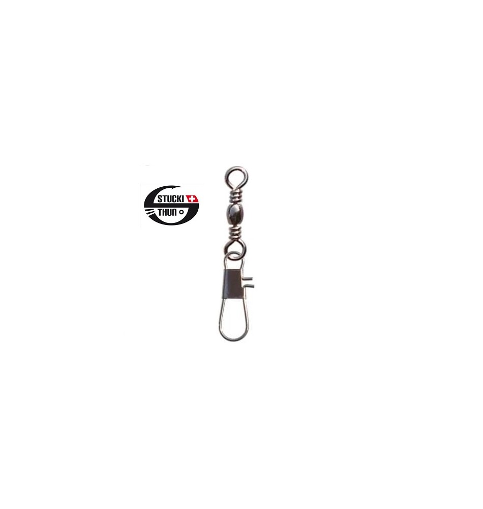 Un Stucki émerillon baril avec agrafe est un accessoire de pêche combinant un émerillon de type baril et une agrafe, conçu pour éviter la torsion de la ligne et faciliter le changement de leurres ou d’hameçons.