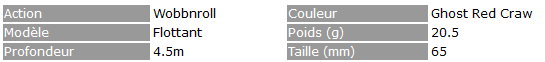 Un crankbait 'grand plongeur' pour exploiter des postes dans plus de quatre mètres d'eau. Doté d'un transfert de masse, il se lance à grande distance. Peu volumineux pour une taille de 65 mm, ce GIGAN descend rapidement vers les profondeurs. Il est adapté au 'bottom taping' pour exploiter des cassures ou des plages , ainsi que pour des pêches en 'cranking' de pleine eau. Sa sonorité 'grave' est particulièrement conseillée pour séduire les plus gros sujets. Le juste équilibre de sa nage entre un 'rolling' très présent et un 'wobbling' plus léger lui donne une signature vibratoire unique particulièrement intéressante sur des poissons éduqués.