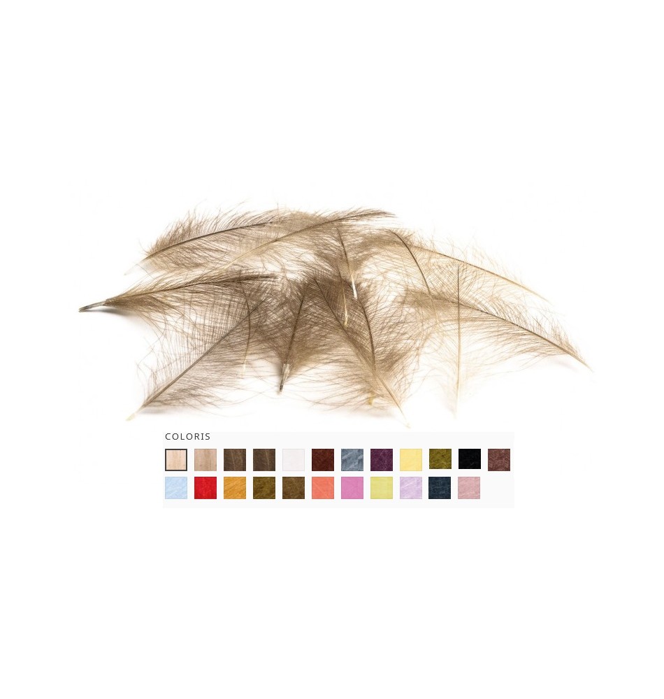 Ces plumes de croupion de canard sont triées et sélectionnées. Toutes les plumes sont utilisables et sont disponibles dans un large choix de coloris.