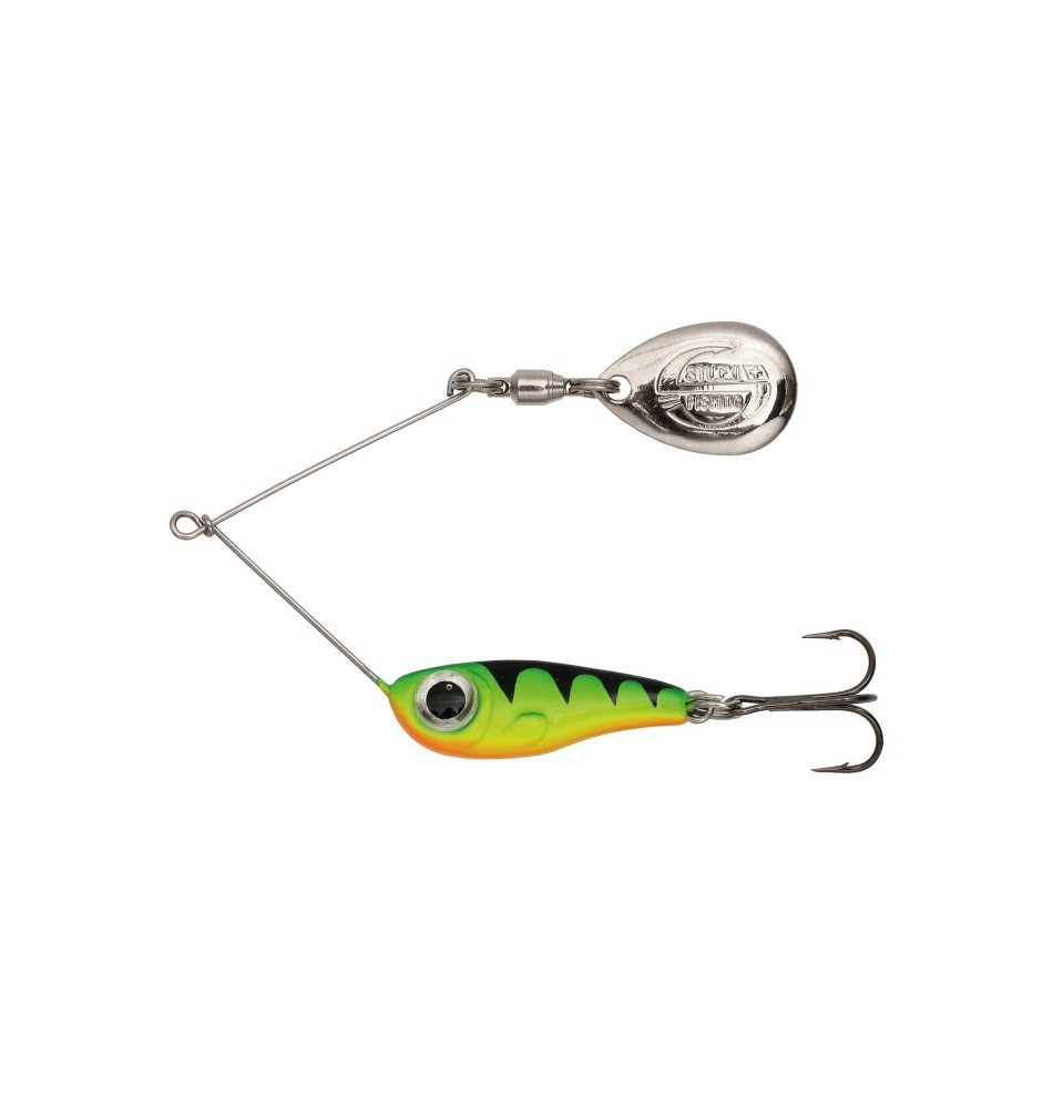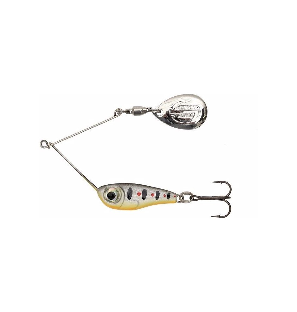 Spinnerbaits pour truites et perches, toujours avoir dans ça boîte ! Le rapport poids / taille a été judicieusement étudié afin de vous permettre d’obtenir de très longues distances au lancer et aussi de stabiliser le spinnerbait en action de nage. Nageant à la moindre sollicitation, ce spinnerbait vous permet de prospecter lentement les postes les plus propices. Même dans la phase de descente, il se met en action et devient ainsi une arme redoutable ! Ce petit spinnerbait fait des ravages sur les perches et les truites.