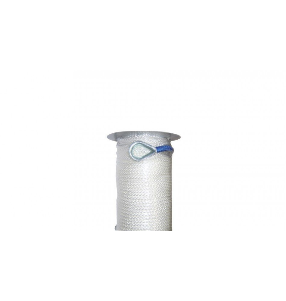 Corde à ancre en nylon blanc, avec boucle renforcée d’un côté.